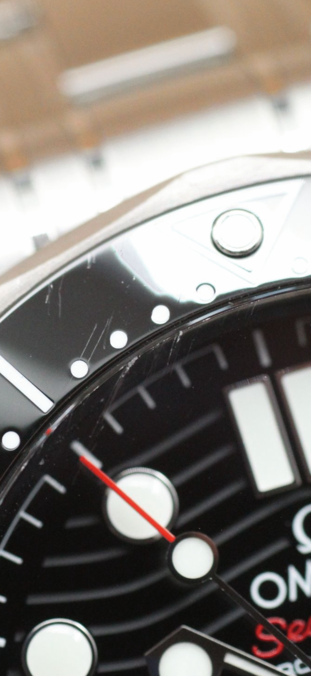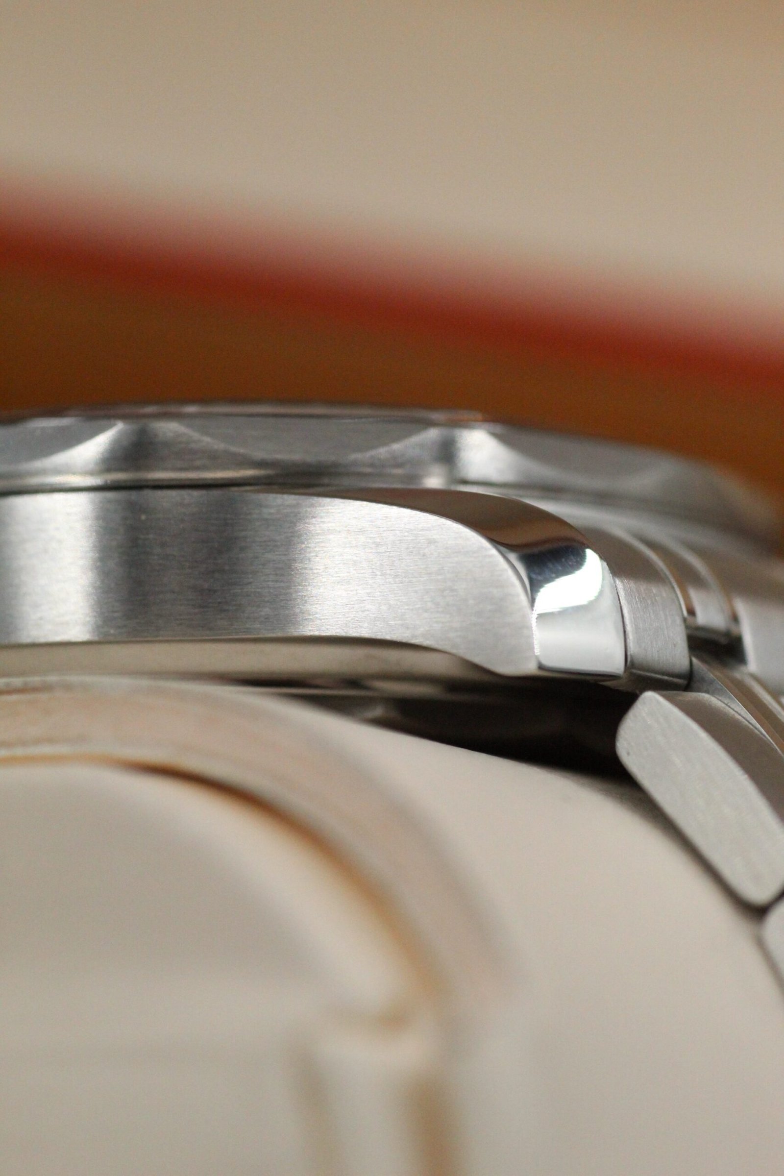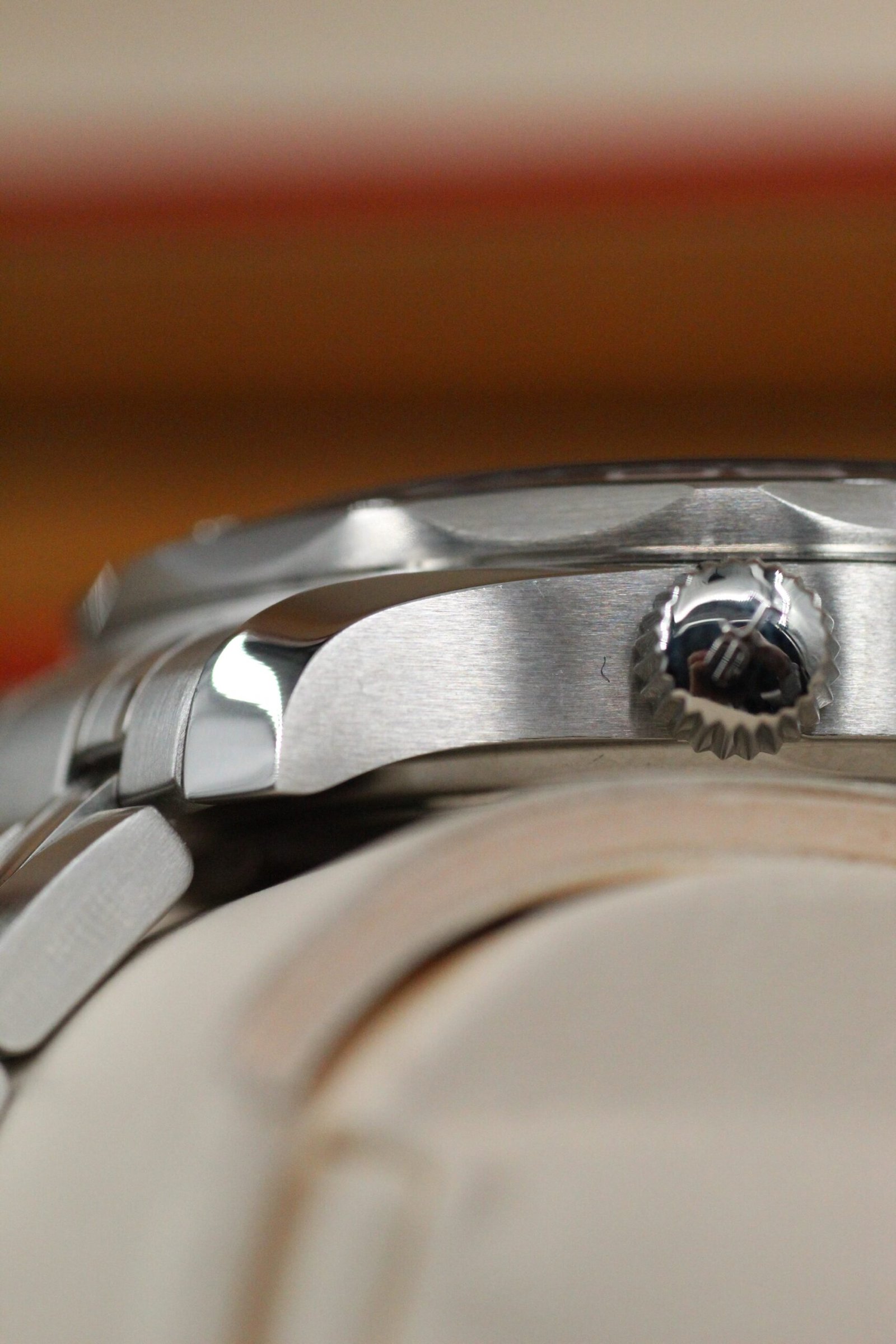 Condition: Overall Near-mint condition. The watch is in near perfect condition throughout except for a mark on the glass/bezel just to the left of 12 o’clock (see last picture). Note that this wear is only visible in very specific angles and lighting and is not noticeable when wearing. The factory stickers are still on the clasp from new.