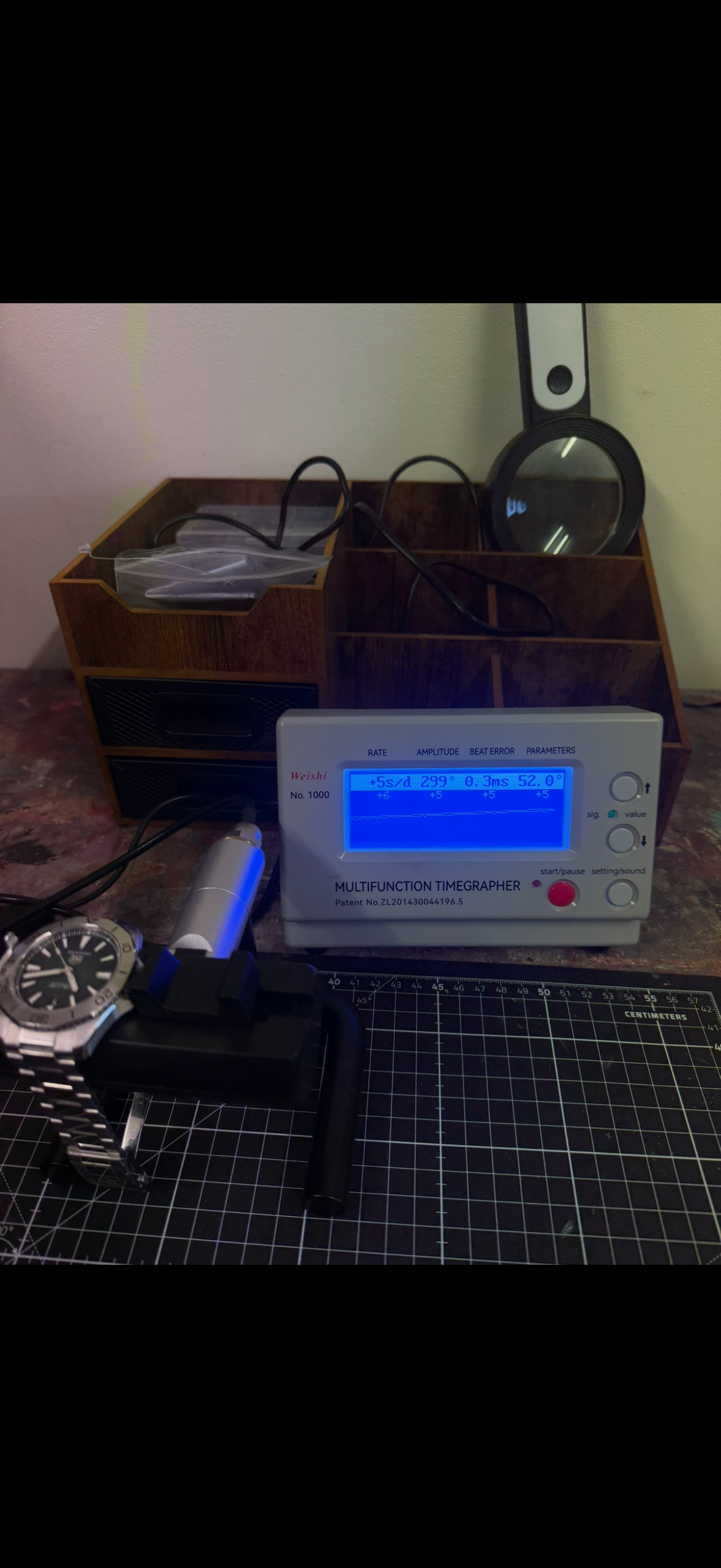 This watch is running within COSC chronometer standards at around +5 seconds change per day and is protected by our 12-month warranty
