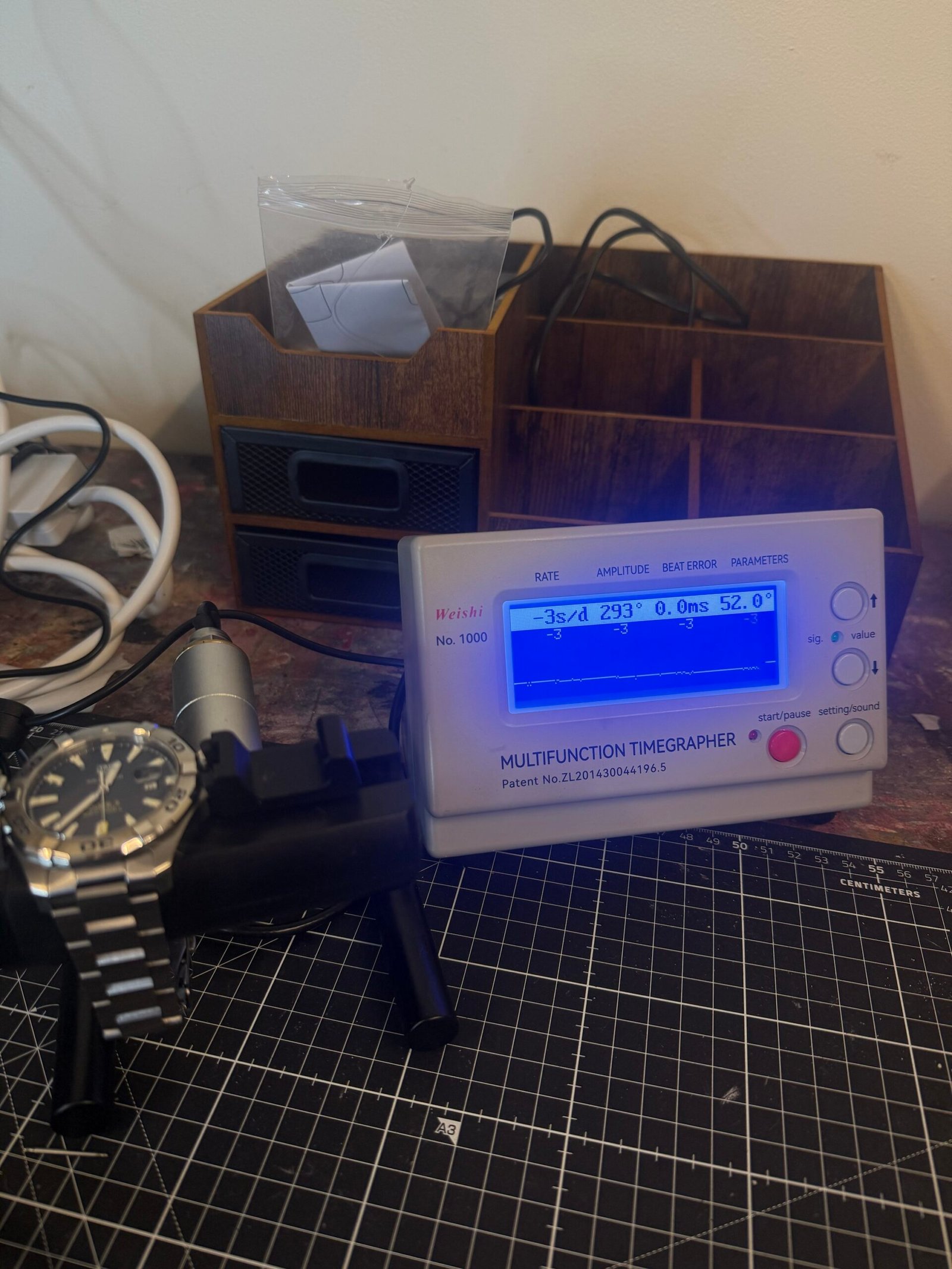 This watch is operating well within COSC chronometer standards at approximately -3 seconds (see timegrapher picture) change per day and is protected by our 12-month warranty.